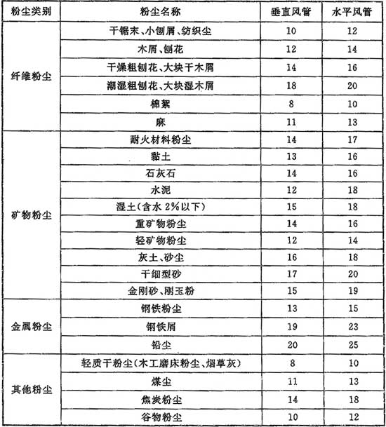 K.0.1 設計工況和通風標準工況相近時,除塵風管最低風速不應低于表K.0.1規(guī)定的數(shù)值。