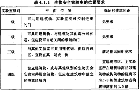 4.1.1 生物安全實驗室的位置要求應(yīng)符合表4.1.1的規(guī)定。